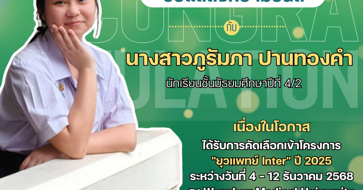 แสดงความยินดีกับนักเรียนที่ได้รับการคัดเลือกเข้าโครงการ “ยุวแพทย์ Inter” ปี 2025