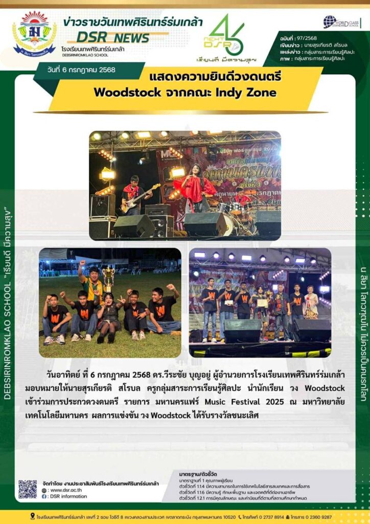 แสดงความยินดีกับวงดนตรี Woodstock จากคณะ Indy Zone