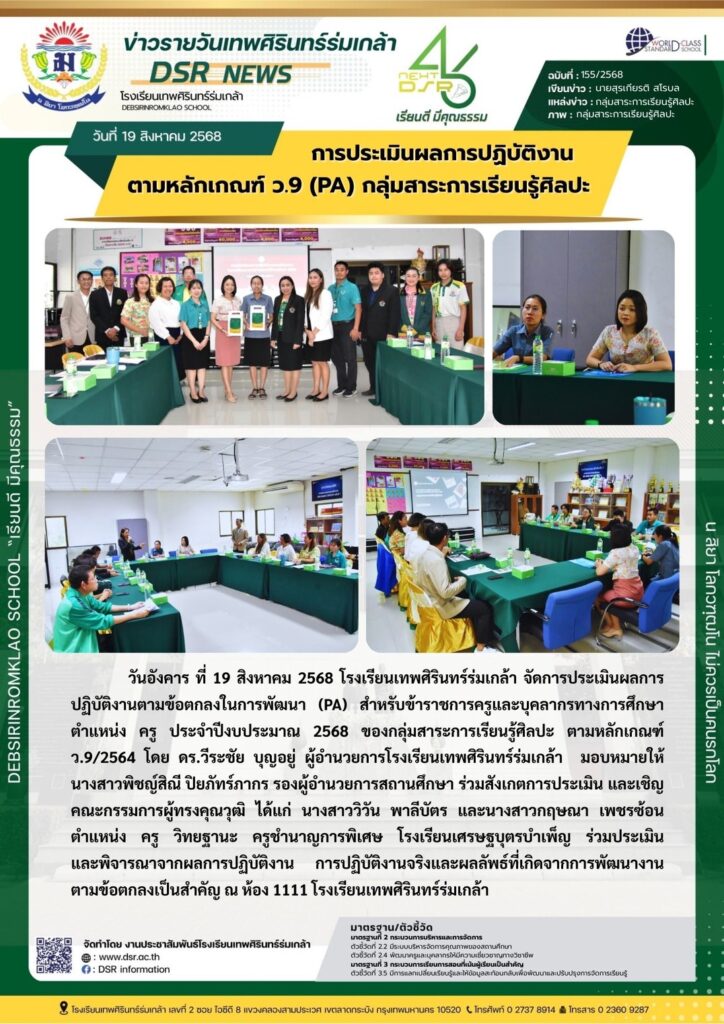 การประเมินผลการปฏิบัติงานตามหลักเกณฑ์ ว.9 (PA) กลุ่มสาระการเรียนรู้ศิลปะ