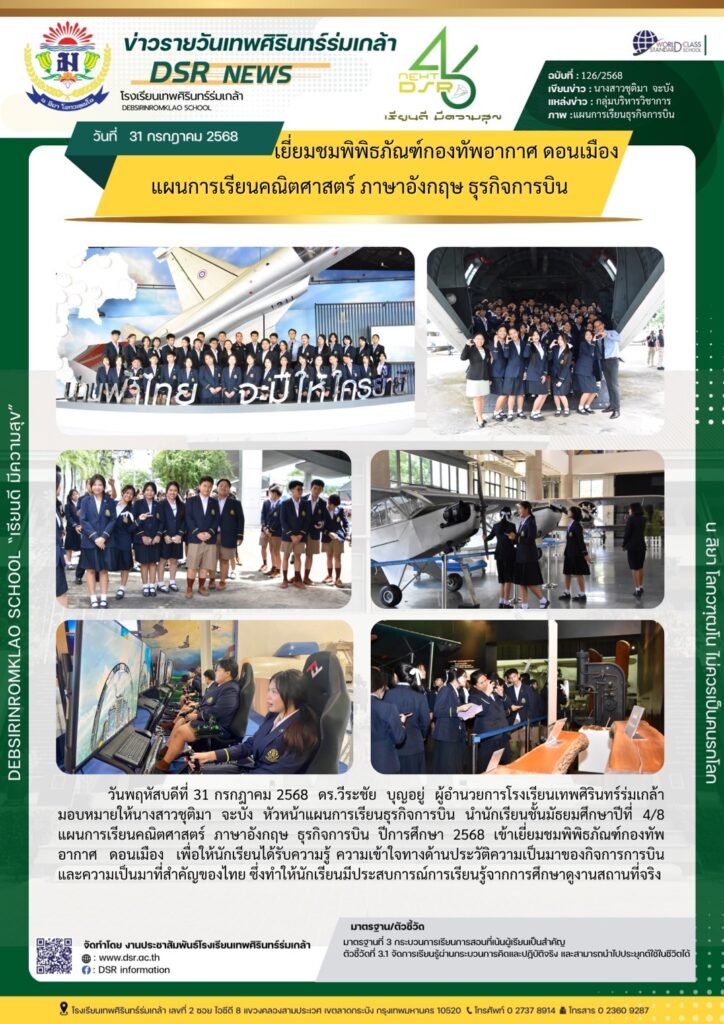 เยี่ยมชมพิพิธภัณฑ์กองทัพอากาศ ดอนเมือง แผนการเรียนคณิตศาสตร์ ภาษาอังกฤษ ธุรกิจการบิน